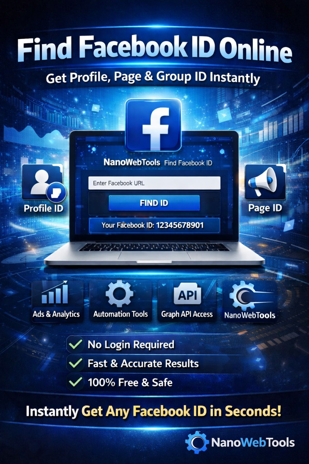 Find Facebook Profile, Page & Group ID instantly using our free Facebook ID Finder. No login required. Fast, accurate & safe online tool by NanoWebTools.